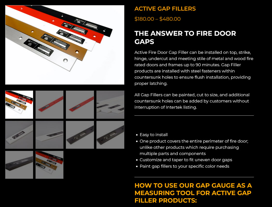 Fire prevention is vital in any commercial building, and during a fire emergency the top priority is getting your customers and staff out of danger. Taking the time to ensure you have the right accessories on your fire rated door is absolutely crucial in order to contain a fire and prevent it from spreading. Somethumb provided an e-commerce solution that accommodated products in variable lengths, widths and colors, along with shipping measurements and weights connected to UPS Services that calculate rates in real-time. We assisted in photography and lighting techniques, and customized a Code Requirements section that can be applied to any product so that the customer knows the product can meet particular compliance requirements per the National Fire Protection Association.